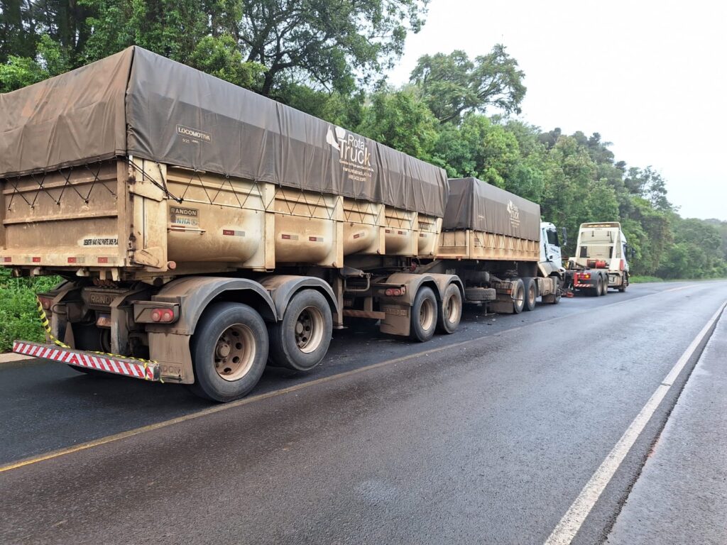 Colisão entre caminhões causa danos materiais na SC-155 em Abelardo Luz