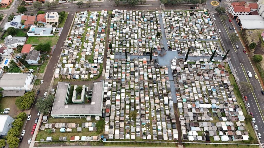31 de outubro de 2025A Prefeitura de Chapecó informa que os cemitérios municipais estarão abertos para visitação das 7h às 19h, tanto no sábado (1), quando no domingo (2), dia de Finados. Isso nos quatro cemitérios que são administrados pela Prefeitura, que são do Ecumênico Municipal João Paulo II, Jardim do Éden, da Linha Tomazelli e do distrito de Marechal Bormann. O diretor geral de Gestão Administrativa, Marcos Giovanoni, lembrou que o prazo para limpeza dos túmulos encerra nesta sexta-feira (31) e o prazo de reformas já encerrou. “A Prefeitura também realizou os serviços de limpeza das áreas comuns, ajardinamento, reformas e pintura. No Finados nós teremos o apoio da Guarda Municipal para orientar o trânsito, principalmente no Jardim do Éden. No Cemitério Central nós vamos isolar parte da Achiles Tomazelli, entre as avenidas Getúlio Vargas e Fernando Machado. Os ambulantes poderão atuar somente na área externa”, disse Marcos. Ele também orientou os concessionários de sepulturas para nos próximos dias buscar o setor de Serviços Gerais, que fica na sede da Prefeitura, na Avenida Getúlio Vargas 957 S, para atualização de cadastro. Informações e esclarecimentos podem ser obtidas pelos números de telefone 49-99165-5093 ou 49 3321-8435. Além disso a Secretaria de Saúde, por meio da Vigilância Ambiental, reforçou as ações de orientação e fiscalização, voltadas tanto para a população quanto para fornecedores de flores e artigos funerários. O objetivo é eliminar depósitos de água, como plásticos de vasos, recipientes e outros materiais que possam acumular água, especialmente nos cemitérios, onde o risco de proliferação é elevado. Recomendações à população: