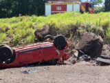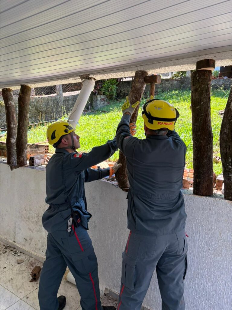 10 de novembro de 2025Na manhã de ontem domingo (9), por volta das 10h23, um veículo invadiu uma residência no bairro Colina Verde, em Cunha Porã. De acordo com o Corpo de Bombeiros Militar, o acidente foi uma saída de pista seguida de colisão contra a casa, mas felizmente ninguém ficou ferido. Ao chegar ao local, as equipes constataram que um Ford Fiesta havia atingido uma residência de alvenaria e ficado entalado na estrutura. Por conta do impacto, parte da construção ficou comprometida, exigindo a estabilização da edificação antes da remoção do automóvel. Após a avaliação dos riscos, os bombeiros realizaram o escoramento da área danificada e, em seguida, retiraram o veículo com segurança. A cena da ocorrência foi deixada sob responsabilidade da Polícia Militar. A operação contou com o emprego das viaturas ABTR-049 e ASU-578 do 12º Batalhão de Bombeiros Militar de Cunha Porã.