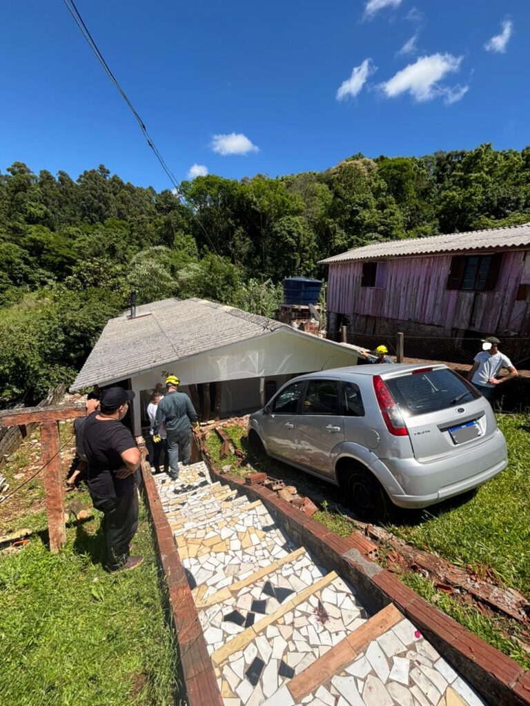Carro invade residência e fica preso em estrutura de alvenaria em Cunha Porã