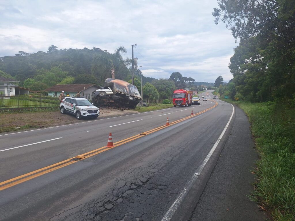 14 de novembro de 2025Um acidente deixou um homem morto e outro ferido na tarde de ontem quinta-feira (13) na SC-418, em Campo Alegre. O caso foi registrado por volta das 15h40min, no km 39,8 da rodovia, quando uma Iveco Daily saiu da pista e colidiu contra uma palmeira e o muro de uma residência. O veículo seguia no sentido Campo Alegre–Joinville. Segundo o relato do motorista, de 31 anos, ele perdeu o controle da direção em um trecho de curva aberta em declive, com pista molhada devido à chuva. O impacto ocorreu fora da pista, em frente à uma residência, danificando a cerca e o portão do imóvel. O condutor sofreu apenas ferimentos leves, como escoriações e um pequeno corte na perna direita. No veículo também estava um passageiro, de 24 anos, que foi socorrido pelo Corpo de Bombeiros e levado ao Hospital São Luiz, em Campo Alegre, mas não resistiu aos ferimentos e morreu pouco depois de dar entrada na unidade. O motorista também foi encaminhado ao hospital e, após atendimento, prestou esclarecimentos à Polícia Militar Rodoviária. Ele realizou o teste de alcoolemia, que não indicou ingestão de álcool. Como estava muito abalado e não conseguiu realizar o sopro corretamente no etilômetro convencional, foi utilizado o teste passivo, que também apontou resultado negativo. A polícia informou que não havia irregularidades no veículo, que foi removido por um guincho particular acionado pelo proprietário. No momento do acidente, as condições da via eram de chuva, com pista molhada, sinalização visível e velocidade regulamentada de 60 km/h. A Polícia Militar Rodoviária registrou a ocorrência e orientou o trânsito até a retirada do veículo.