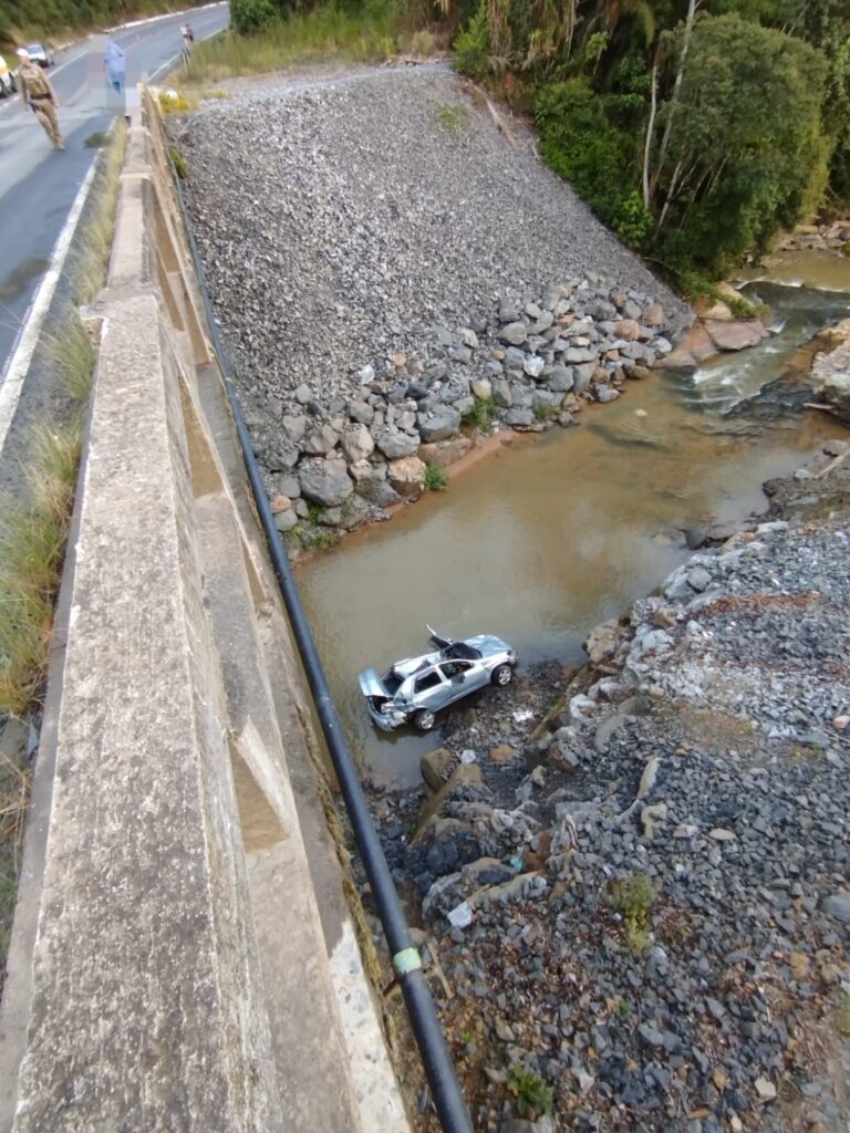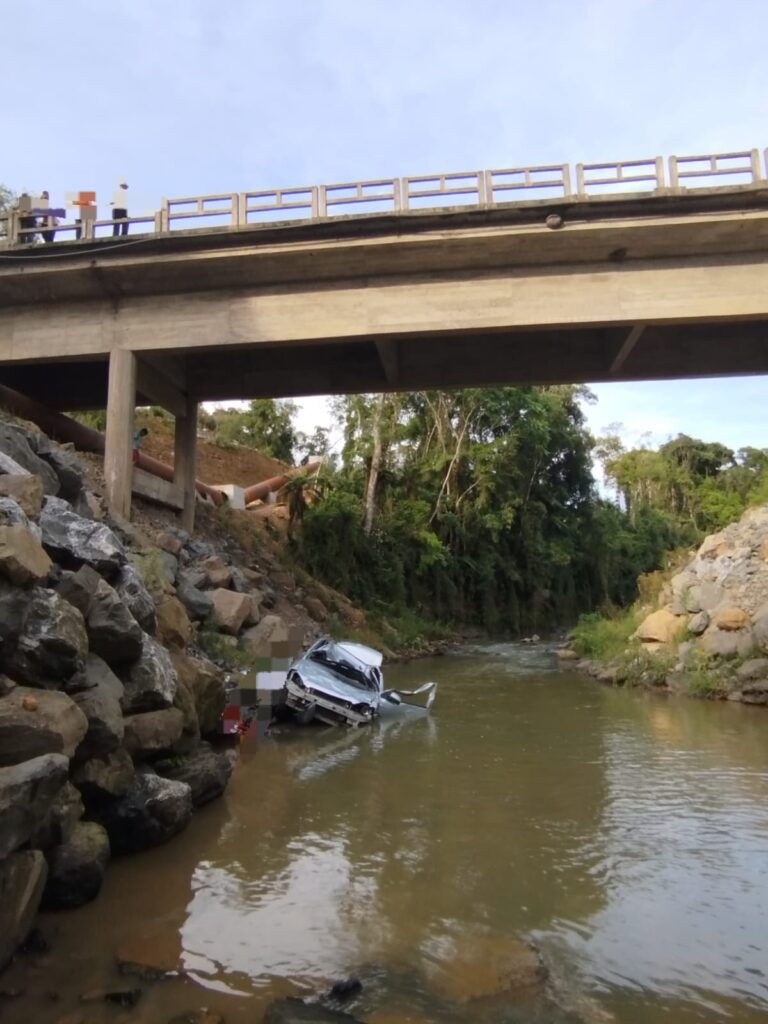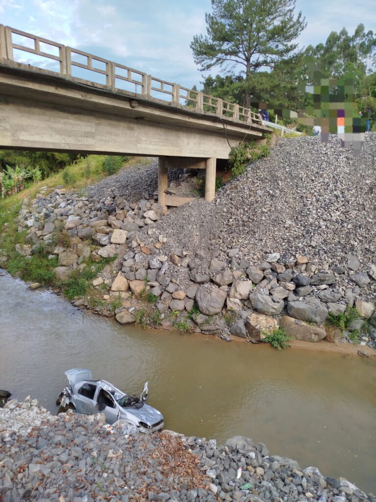 Saída de pista e queda em rio deixa um morto e duas idosas feridas em Ituporanga