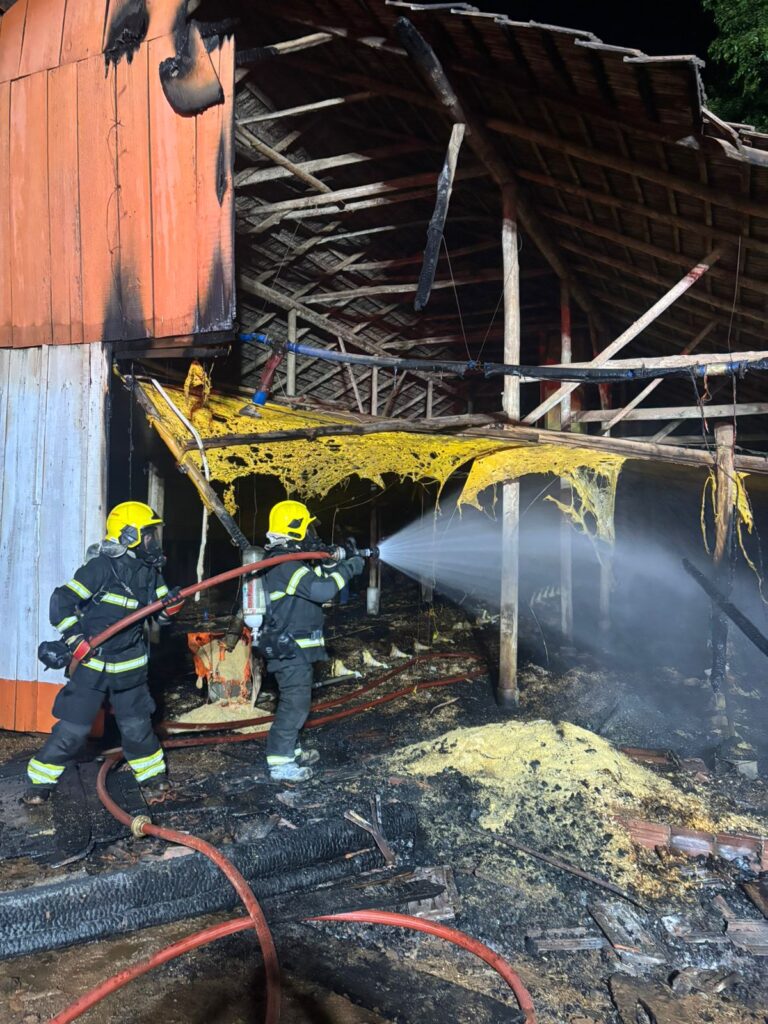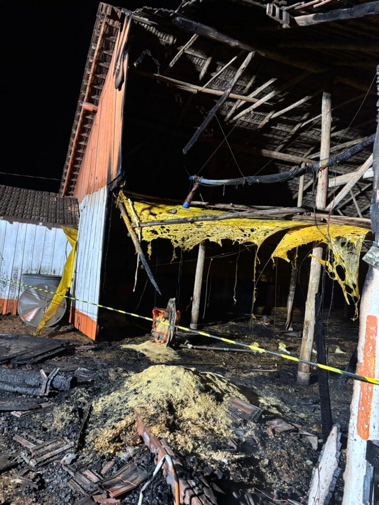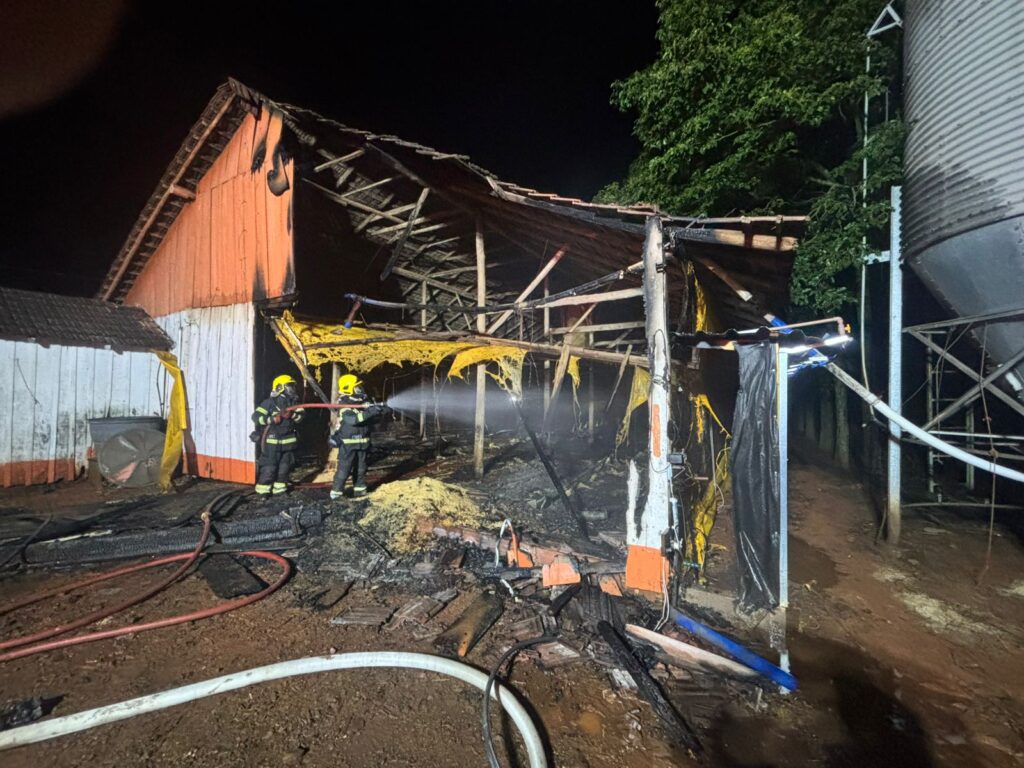 Incêndio atinge aviário durante a madrugada em Saudades; veja o vídeo