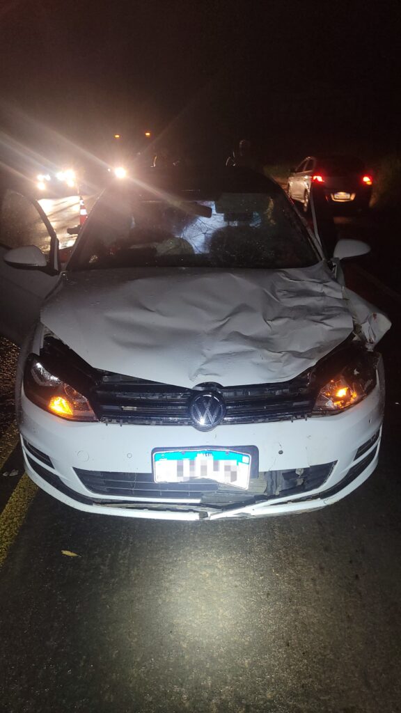 Um cavalo de grande porte invadiu a pista e provocou um acidente na SC-480, em Chapecó, na noite de ontem sábado (27). Duas pessoas ficaram feridas. O caso foi registrado no km 154,100 da rodovia, próximo à saída do distrito de Marechal Bormann, por volta das 20h30. Segundo a Polícia Militar Rodoviária, o veículo VW Golf, conduzido por uma mulher de 50 anos, seguia no sentido Chapecó–Goio-Ên quando o animal entrou repentinamente na pista. A motorista não conseguiu desviar e acabou atropelando o cavalo, que morreu no local. No carro também estava uma passageira de 20 anos. As duas sofreram ferimentos leves. A jovem teve escoriações no rosto e foi encaminhada pelo Samu ao Hospital Regional do Oeste para avaliação médica. Não houve registro de feridos graves. No momento do acidente chovia, a pista estava molhada e o trecho possui limite de velocidade de 60 km/h. A via precisou ser bloqueada apenas durante a retirada do animal e, na sequência, o trânsito foi liberado. A ocorrência foi registrada como sinistro de trânsito com vítimas e omissão de cautela na guarda ou condução de animais.