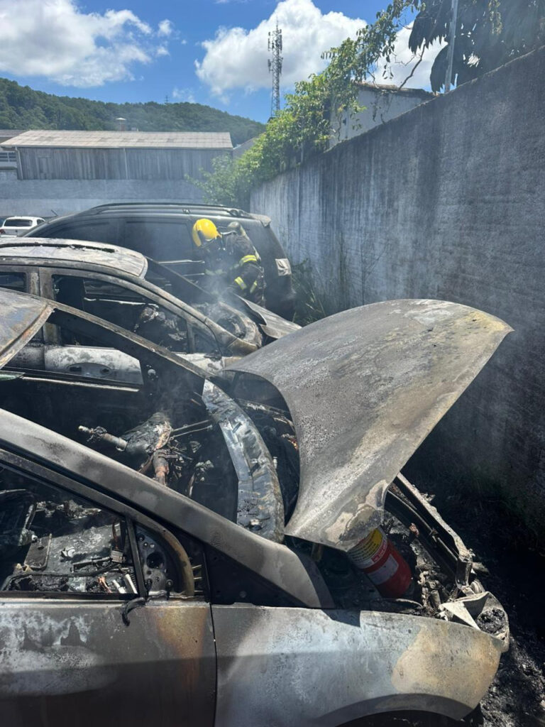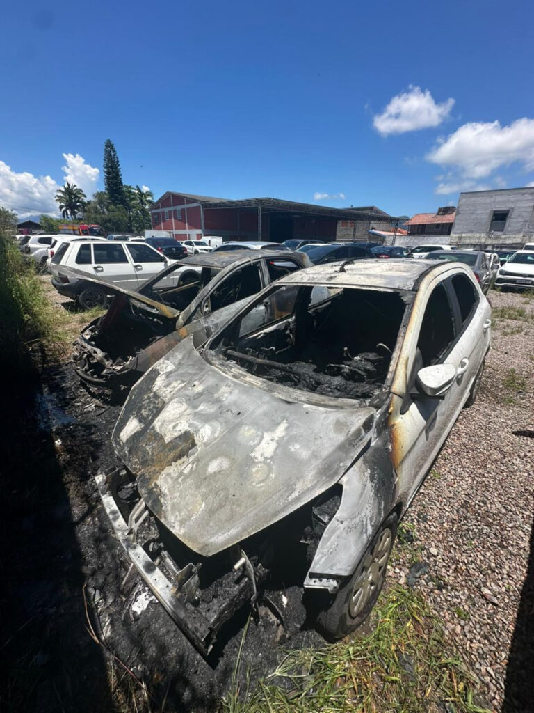 Incêndio atinge veículos em pátio e mobiliza bombeiros em SC