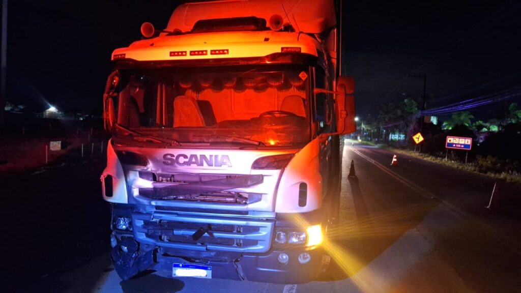 11 de janeiro de 2026Um motociclista de 49 anos morreu após um grave acidente de trânsito registrado na madrugada de ontem sábado (10), na rodovia SC-412, em Itajaí. A colisão aconteceu por volta das 2h50, no km 4,200, na localidade de Santa Regina. De acordo com as informações apuradas no local, o acidente foi uma colisão transversal envolvendo um caminhão Scania e uma motocicleta Honda CG 150. O caminhão seguia no sentido Ilhota–Itajaí quando a motocicleta, que trafegava no sentido contrário, cruzou a pista, ocorrendo o impacto. O condutor da motocicleta não resistiu aos ferimentos e morreu no local. O motorista do caminhão de 23 anos realizou o teste do bafômetro, que apresentou resultado negativo para ingestão de álcool. Não houve registro de outras vítimas. A rodovia possui pista simples, fica em perímetro urbano e apresentava sinalização visível no momento do acidente. O trecho, porém, não conta com iluminação pública. O tempo era bom e o limite de velocidade no local é de 60 km/h. Após os procedimentos, a pista foi liberada. A motocicleta foi removida para o pátio credenciado, já que não havia responsável no local para assumir a guarda do veículo. Não houve testemunhas que se manifestassem sobre o ocorrido.