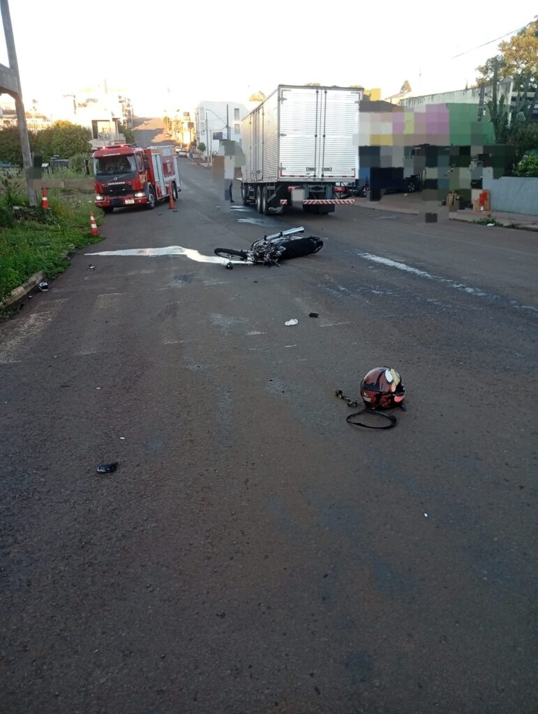 Motociclista sofre múltiplas fraturas, entra em parada cardíaca e morre após colisão com caminhão em Campo Erê