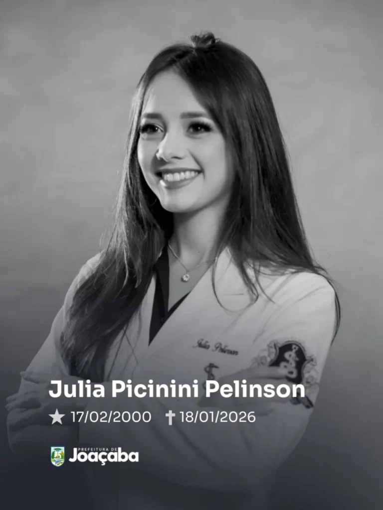 O Município de Joaçaba decretou luto oficial de três dias em razão do falecimento da médica Dra. Julia Picinini Pelinson, ocorrido neste domingo (18). Com apenas 25 anos, Dra. Julia atuava desde janeiro de 2026 na Unidade Básica de Saúde Clara Adélia, prestando atendimento à população joaçabense por meio do programa Universidade Gratuita, pelo qual exercia suas atividades no município. Mesmo em um período breve de atuação, Julia demonstrou comprometimento, sensibilidade e dedicação no cuidado com os pacientes, sendo reconhecida por colegas e usuários do sistema de saúde pelo profissionalismo e humanidade no exercício da Medicina. As informações sobre velório e sepultamento ainda não foram definidas e serão divulgadas oportunamente. A Administração Municipal se solidariza com os familiares, amigos, colegas de trabalho e com toda a comunidade neste momento de profunda dor, lamenta imensamente a perda e presta sua homenagem à jovem médica que, com vocação e empenho, contribuiu para a promoção da saúde e do bem-estar da população joaçabense.