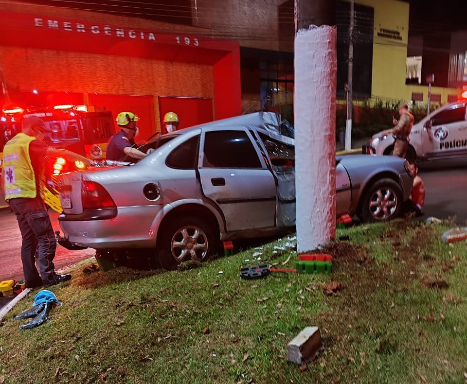 Homem fica ferido após batida de carro contra poste em Chapecó