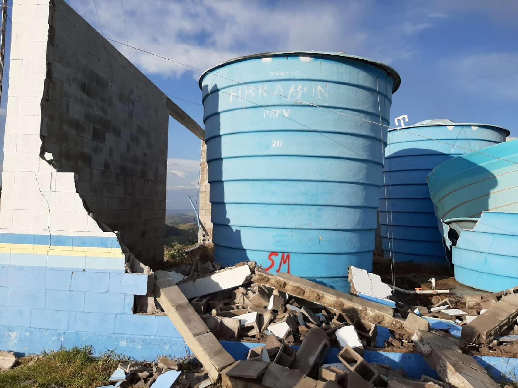 Segundo ele, onde está instalado o sistema é um lugar alto, e os ventos acabaram derrubando uma parede, o portão e danificaram as caixas onde é armazenada a água.