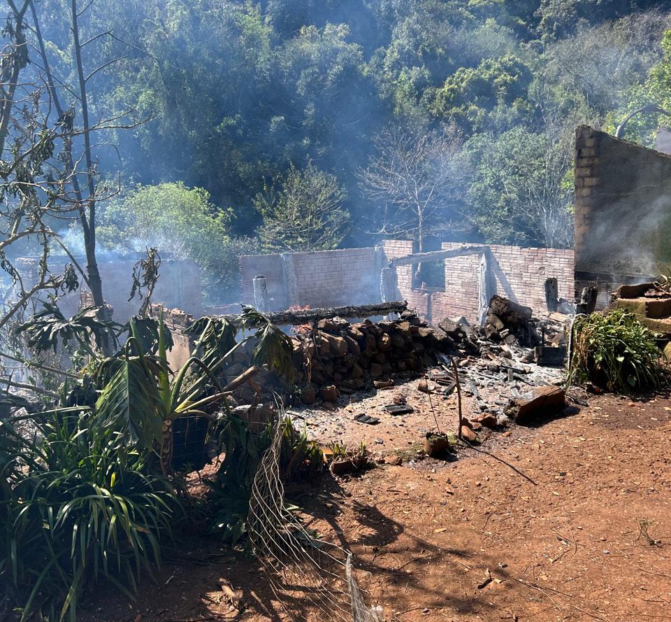 Casa é completamente destruída por incêndio em Herval d’Oeste