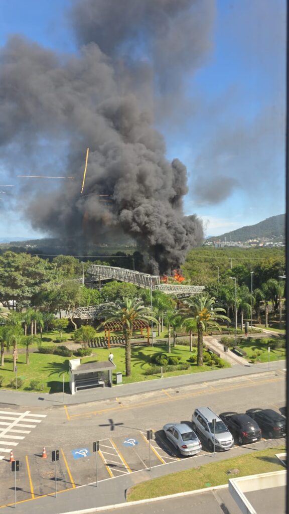 Um grave acidente de trânsito foi registrado na manhã desta quarta-feira (8), nas proximidades do acesso ao Floripa Shopping, no bairro Monte Verde, em Florianópolis. De acordo com o Corpo de Bombeiros Militar de Santa Catarina (CBMSC), a ocorrência envolveu um ônibus de transporte coletivo e uma motocicleta. Após a colisão, o motociclista acabou ficando preso sob o ônibus, que rapidamente foi tomado pelas chamas. Populares tentaram socorrer a vítima, mas não conseguiram retirá-la antes que o fogo se alastrasse. Infelizmente, o motociclista morreu ainda no local. O motociclista foi identificado como Flavio Augusto Schuller Azambuja, de 26 anos. Equipes de combate a incêndio dos quartéis da Trindade e do Centro foram acionadas, além de ambulâncias de Canasvieiras e do Centro. O incêndio foi completamente controlado, e os bombeiros trabalham na retirada da vítima e na limpeza da via. Conforme apurado, Flavio estava fora da pista e ao voltar para a rodovia foi atingido pelo ônibus executivo do Consórcio Fênix, empresa responsável pelo transporte coletivo. A rodovia foi liberada, por completo, às 12h30. Flavio era empreendedor e natural do Rio Grande do Sul. Ele também era atleta na Paboom Boxe, que por meio de nota lamentou a morte trágica. “Filhote, desejo do fundo do meu coração que os bons espíritos te acolham, meu fiel.” Não há informações sobre velório e enterro. As causas do acidente ainda serãomelhores apuradas pelas autoridades competentes.