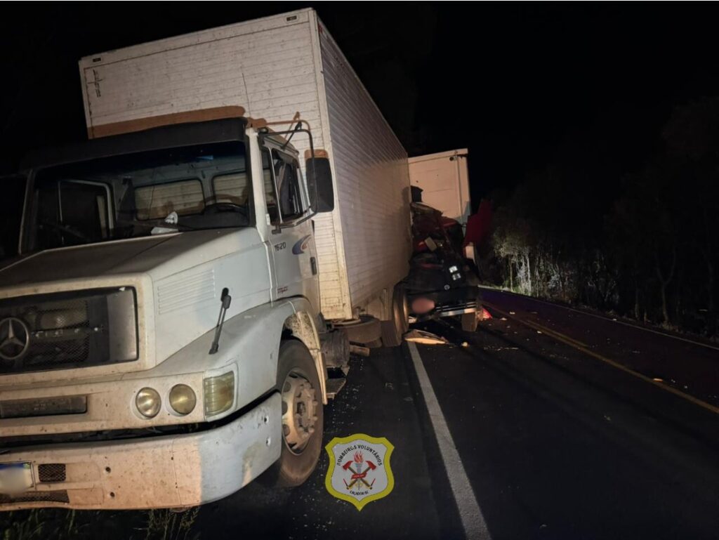 Um motorista de 58 anos ficou gravemente ferido após bater o caminhão que conduzia na traseira de outro veículo na madrugada de ontem quinta-feira, dia 23, na SC-350, em Caçador, no Meio-Oeste catarinense. De acordo com o Corpo de Bombeiros Voluntários do município, o acidente ocorreu por volta de 1 hora, no km 30 da rodovia. No local, um dos caminhões teve a cabine completamente destruída e ficou presa na traseira do outro veículo. O condutor do caminhão que causou a colisão apresentava ferimentos graves nas pernas, com sangramento ativo. Ele foi atendido pelas equipes de resgate e encaminhado ao Hospital Maicé, de Caçador, pelo Samu. Outro motorista, de 35 anos, também foi atendido no local com ferimentos leves. A Polícia Militar Rodoviária (PMRv) foi acionada para registrar a ocorrência e controlar o trânsito no local.